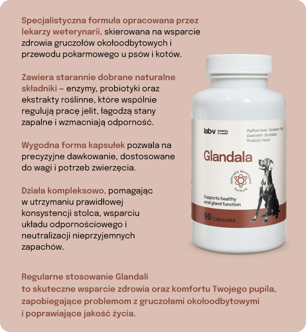 Lab-v Glandala - Wsparcie prawidłowego funkcjonowania gruczołów okołoodbytowych i przewodu pokarmowego dla psów 90 kapsułek