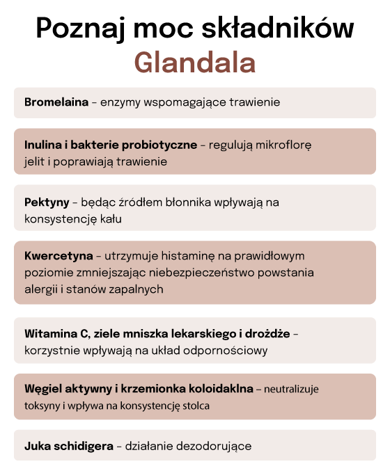 - ✅ Wsparcie pracy gruczołów okołoodbytowych – błonnik i probiotyki regulują konsystencję stolca