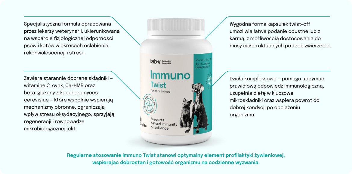 Immuno Twist – wsparcie naturalnej odporności i witalności dla psów i kotów 60 kapsułek twist off