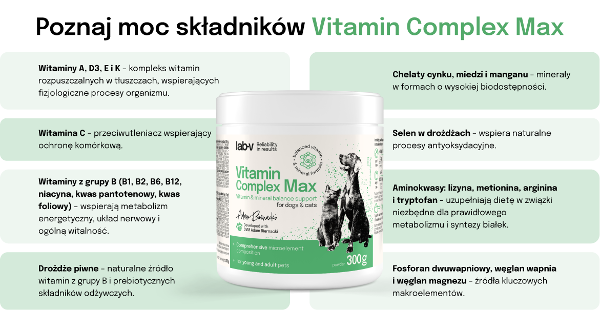 Vitamin Complex Max – Kompleks witamin i minerałów dla psów i kotów 300 g