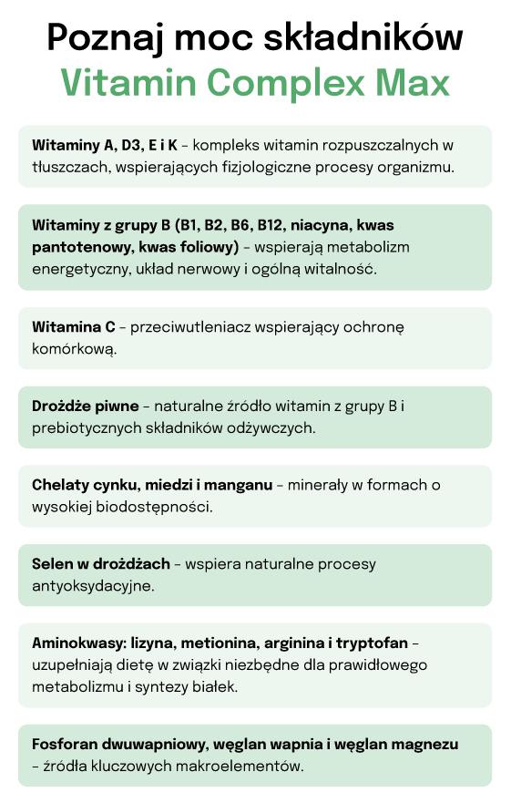 - ✅ Wsparcie w okresach zwiększonego zapotrzebowania – wzrost, rekonwalescencja, intensywna aktywność.